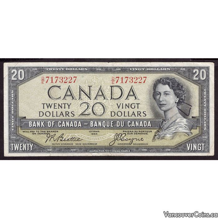 1954 Canada $20 Devils Face note BC33b D/E7173227 VF small tear @ 7pm & ink