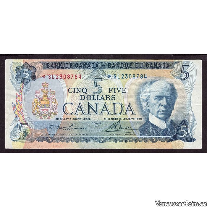 1972 Canada $5 replacement banknote Lawson Bouey *SL2308784 nice VF