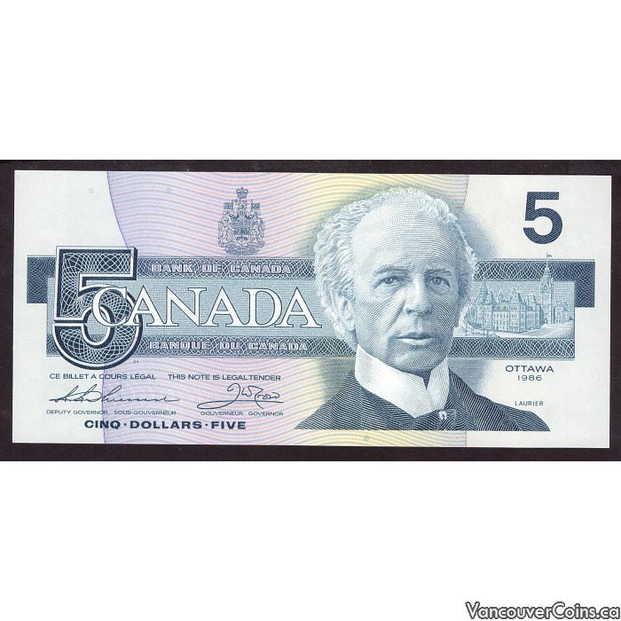 1986 Canada $5 banknote Theissen Crow GNY0550597 BC-56b Choice UNC