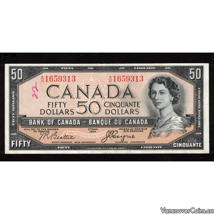 1954 Canada $50 devils face banknote Beattie Coyne A/H 1659313 Choice EF