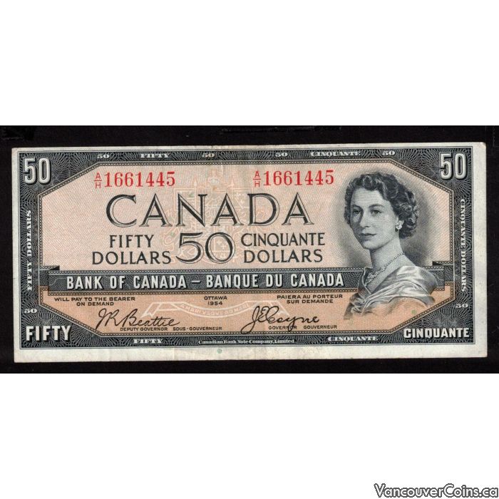 1954 Canada $50 devils face banknote Beattie Coyne A/H 1661445 VF