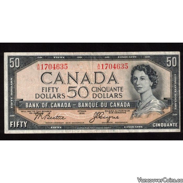 1954 Canada $50 devils face banknote Beattie Coyne A/H 1704635 F/VF