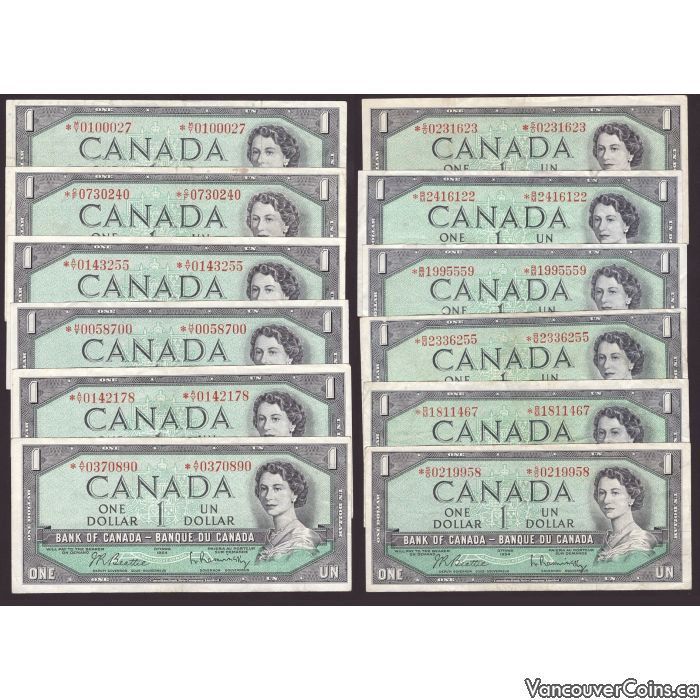 12x 1954 Canada $1 dollar replacement banknotes