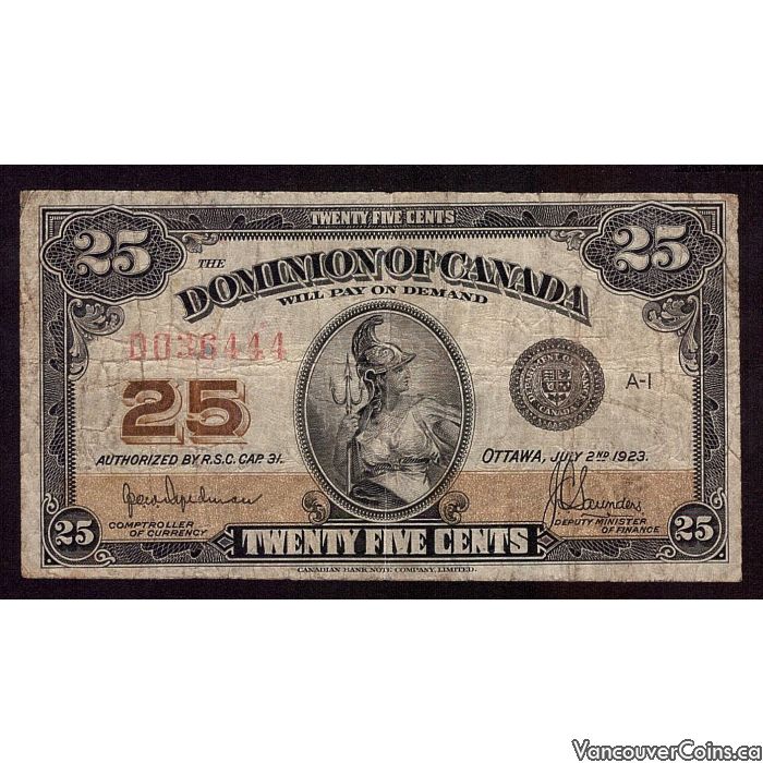1923 Canada 25 cents banknote DC-24a Authorized D036444 F+