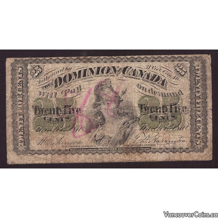 1870 Dominion of Canada 25 cents shinplaster
