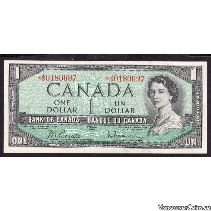 1954 Canada $1 replacement note Beattie Rasminsky *S/O0180697 CH AU/UNC