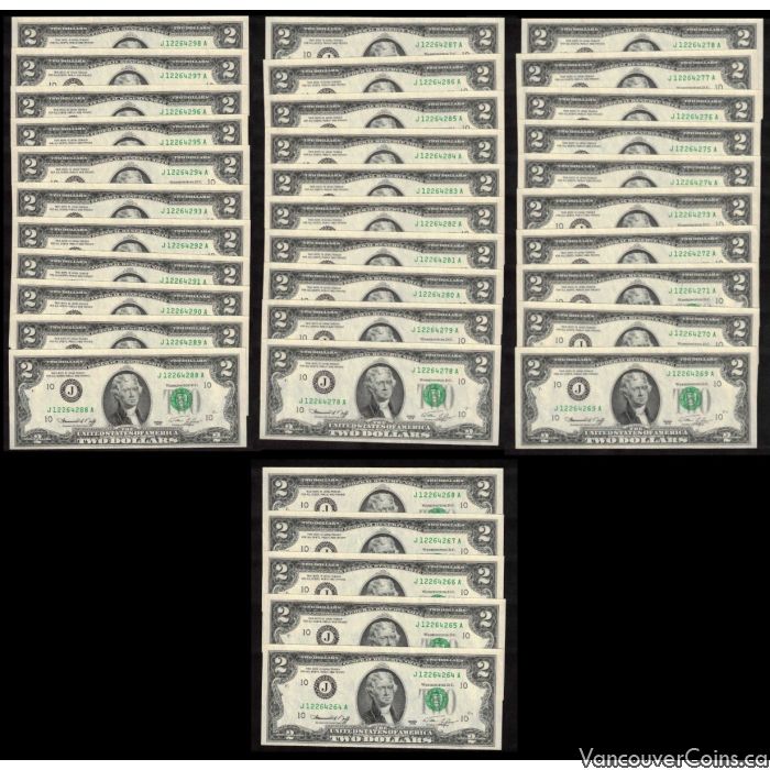35x 1976 J USA Kansas $2 FR consecutive notes J12264264-98A FR1935J CH UNC