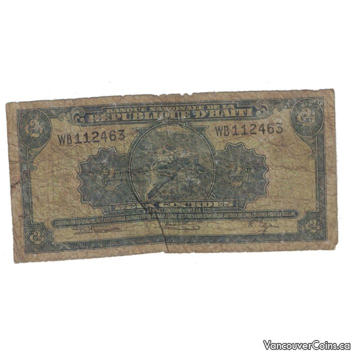 Haiti Two Gourdes banknote WB112463 P175 poor/AG condition