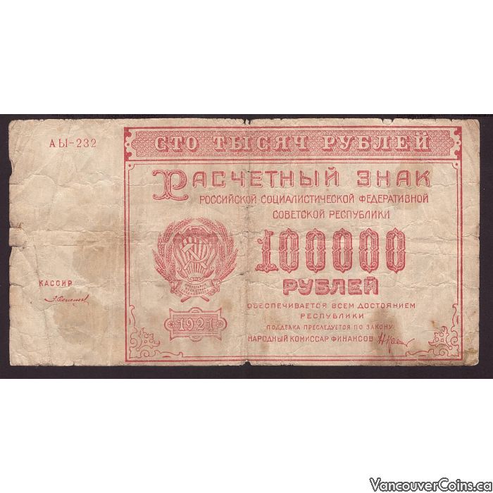 1921 Russia 100,000 Rubles banknote Crosses-Watermark