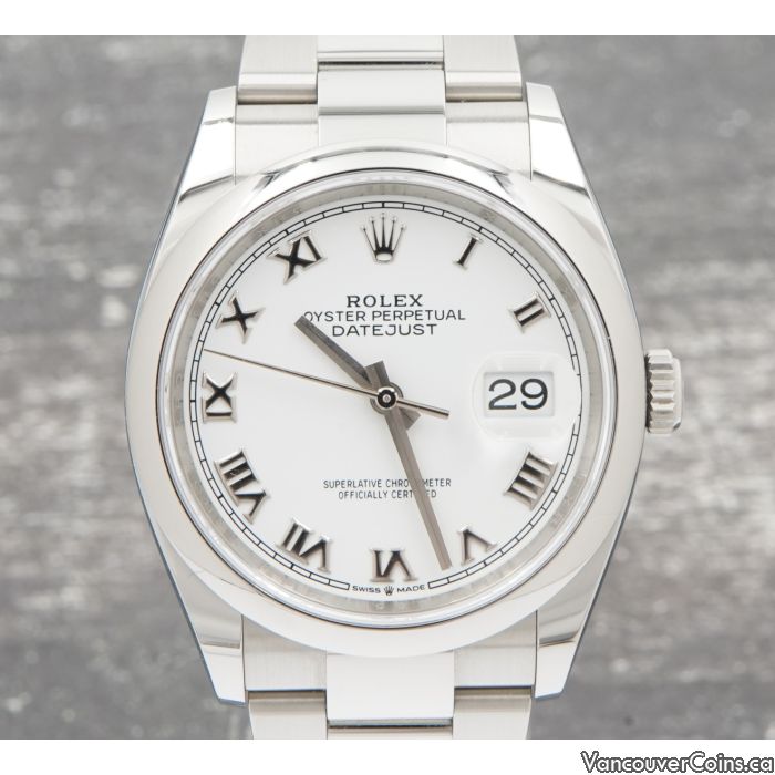 Rolex Datejust 36 126200 2021 White Dial Roman Numerals Stainless Steel Watch