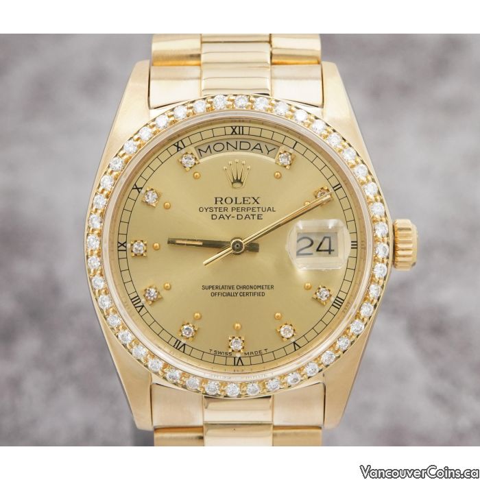 Rolex President Day-Date 18038 1984 18K Yellow Gold Custom Diamond Dial & Bezel Mens Watch