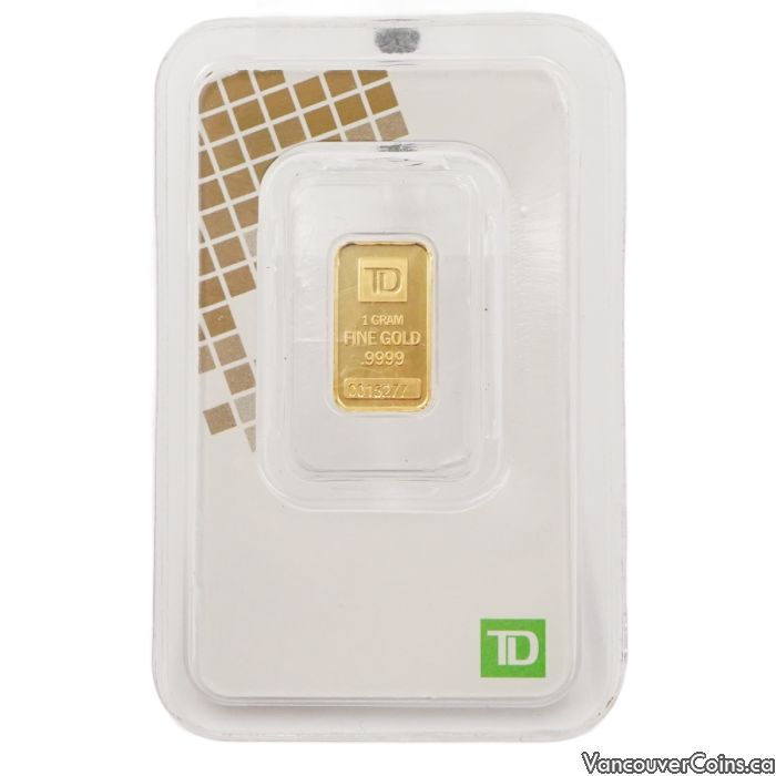 TD 1 Gram Gold Bar - .9999 Pure Fine Gold - Sealed in Assay