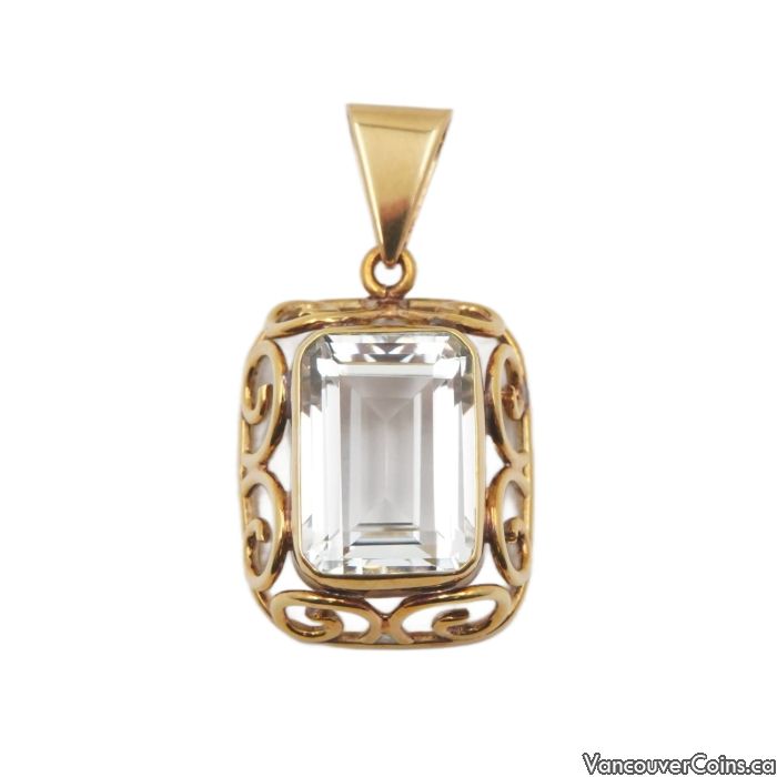 14K Yellow Gold 7.85ct Emerald-Cut Aquamarine Pendant 5.42 grams