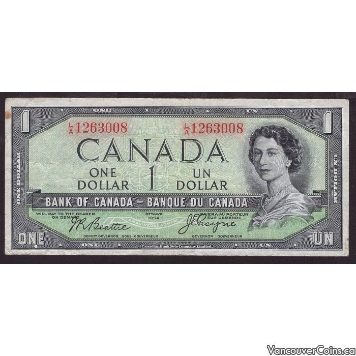 1954 Canada $1 Devils Face note BC29b Beattie Coyne L/A1263008 a/VF