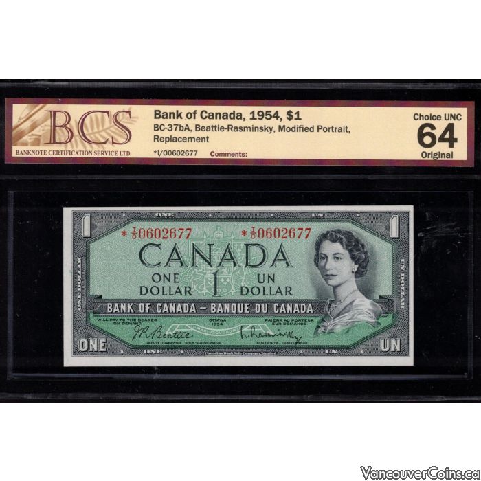 1954 Canada $1 replacement note  BC-37bA *I/O 0602677 BCS CH UNC-64