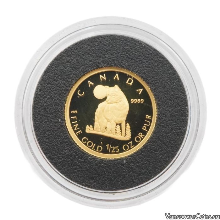 2007 Canada 50 Cents 1/25 oz .9999 Fine Gold Proof Coin - The Wolf RCM