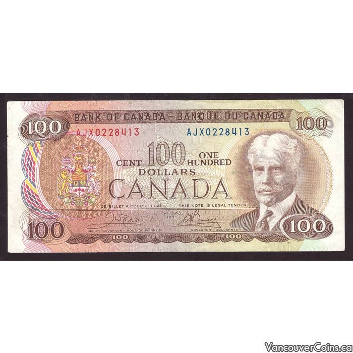 1975 Canada $100 replacement banknote Crow Bouey AJX0228413 nice VF+