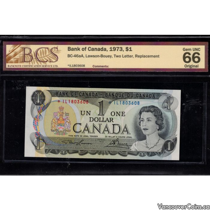 1973 Canada $1 replacement note Lawson Bouey *IL 1803608 BCS GEM UNC-66