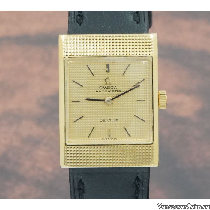 Omega De Ville Automatic (Cal. 661) – Unique Guilloché 18K Yellow Gold, Rectangular Case